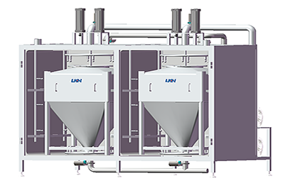 優康恩自動化料系統用于對粉料和其它配料進行乳化和水化的混料系統設備。其中真空混料機可在密閉真空容器下進行高速剪切乳化混合綜合產品、各種粉末和液體等,每小時化粉量可達到3T-5T。優康恩自動化料系統可利用真空作用將配料輸送到化料設備中,省去了操作工承擔這項繁重工作的需要。